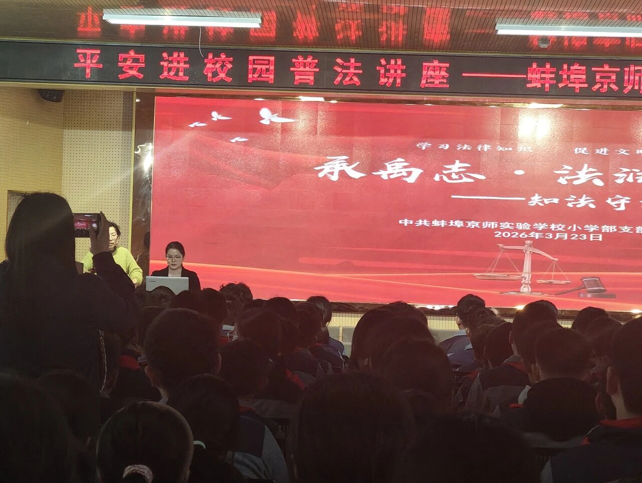 为深入贯彻落实未成年人法治教育工作,增强青少年法治意识,筑牢校园安全防线,近日,大森律师事务所梁文玉律师应蚌埠市禹会区司法局法制科邀请,走进北师大实验学校小学部,为在校学生带来了一场以“守护皖美青春,坚定与法同行”为主题的法治安全教育讲座。